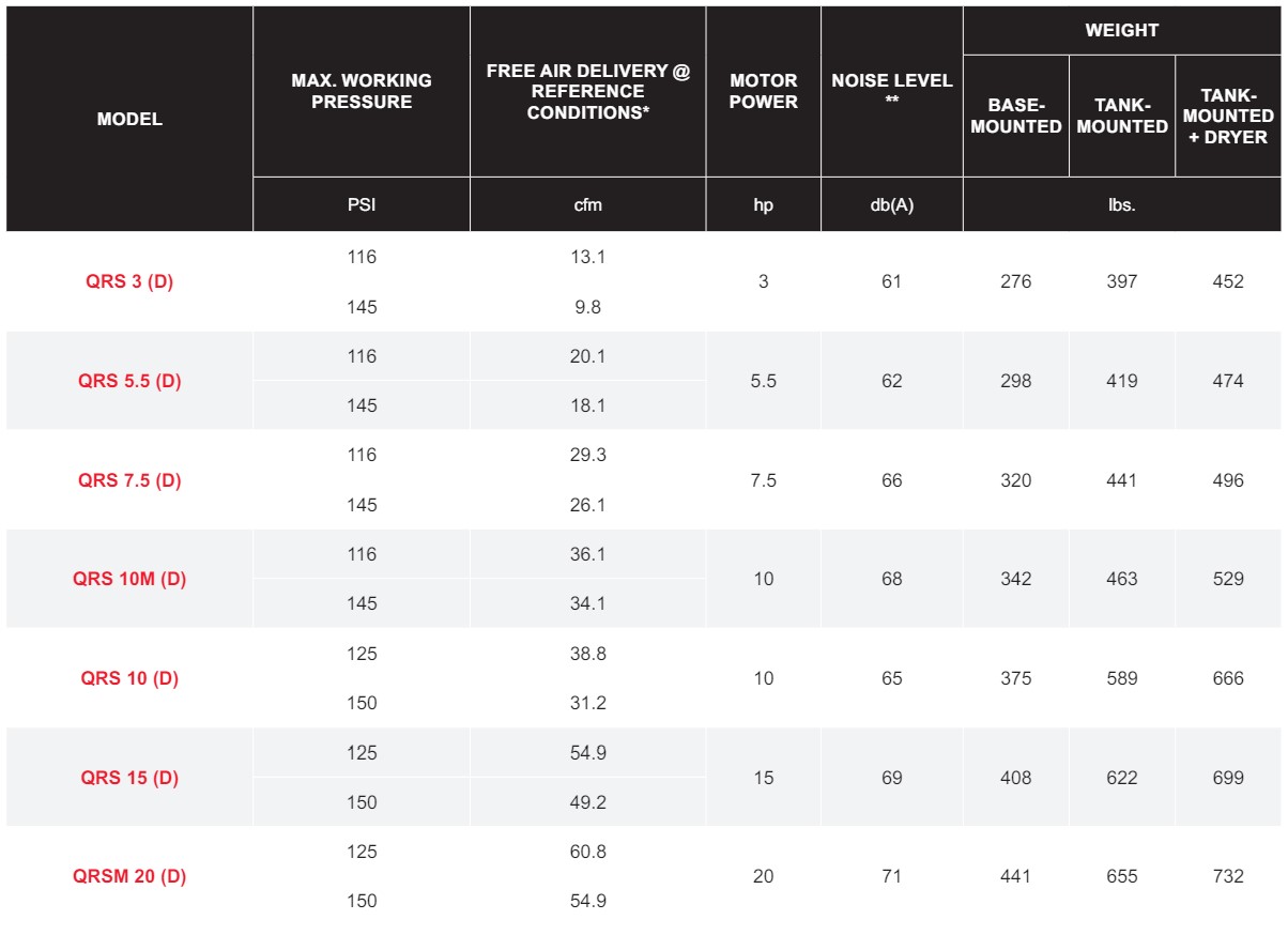 The Chicago Pneumatic QRS Rotary Screw Air Compressor is housed in a low sound enclosure and comes with spin-on oil and separator filters as standard. It is ideal for a range of applications including tire shops, maintenance shops, paint shops, automotive and industrial light applications. The unit is designed for 100% continuous duty, running at lower RPMs to maximize runtime. Receivers for tank mount options are ASME/CRN certified, and the product is NEMA 1 electrical protected with a UL and cUL approved control panel.